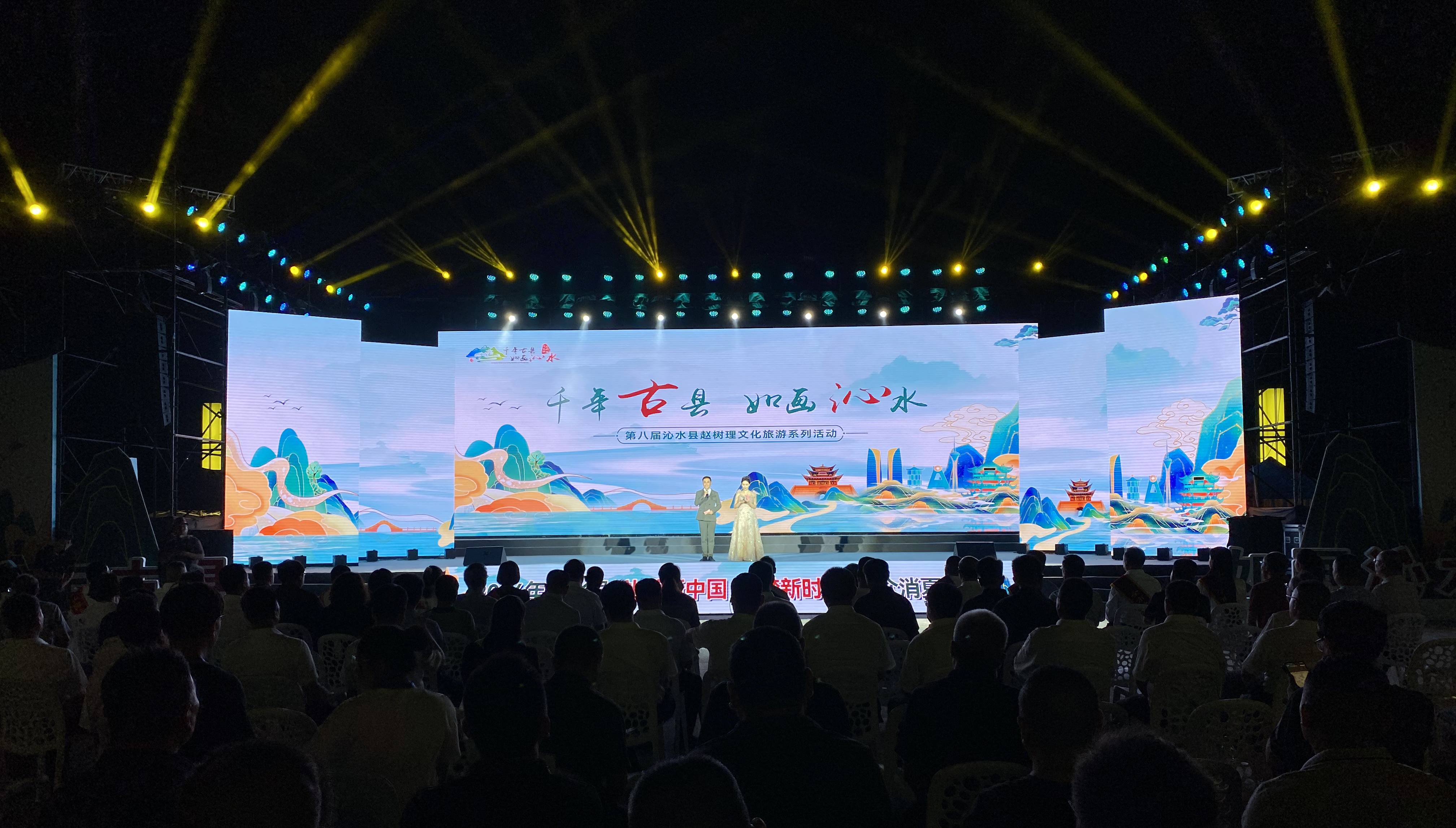 灯火璀璨,星光烂漫,伴随着一场精彩纷呈的群众性消夏晚会,第八届沁水县赵树理文化旅游系列活动拉开帷幕。今年的主题是“沁河之恋”,大幕开启,“沁河”拟人化表演者从千年历史中走来,以讲述形式,串联起沁水的历史、现在和未来。