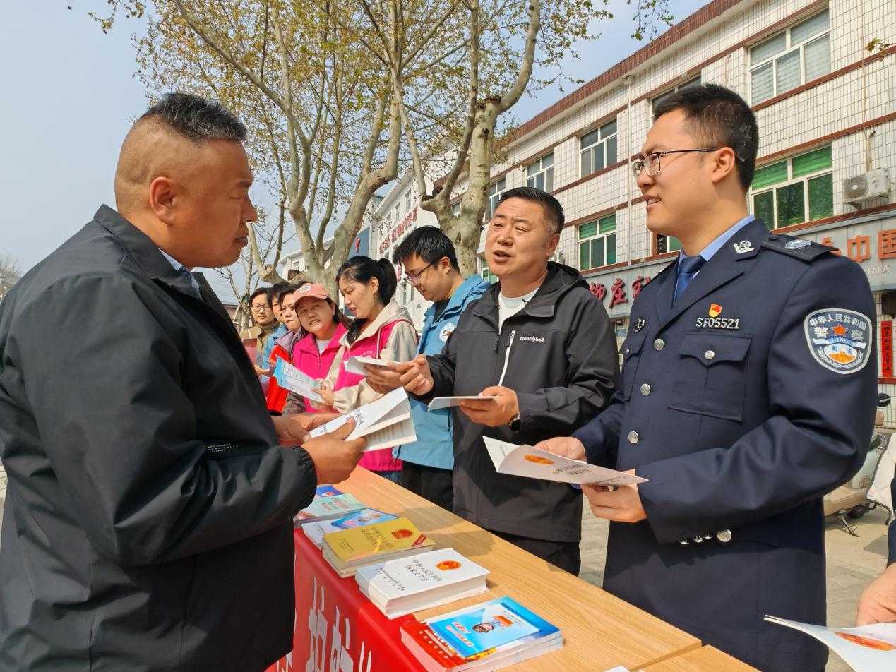 郑村司法所联合镇综治办、派出所,向过往群众普及国家安全、反邪教、反诈、民法典等相关法律知识,引导群众树牢总体国家安全观,自觉抵制各类危害国家安全的行为,主动参与到乡村平安建设中来。