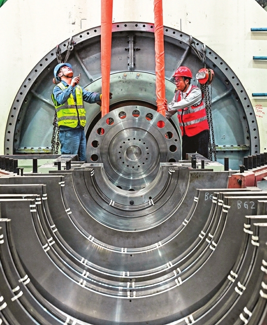 国电电力大同湖东发电有限公司1号机组发电机转子穿装作业一次成功。山西日报记者刘通 通讯员张占兵摄