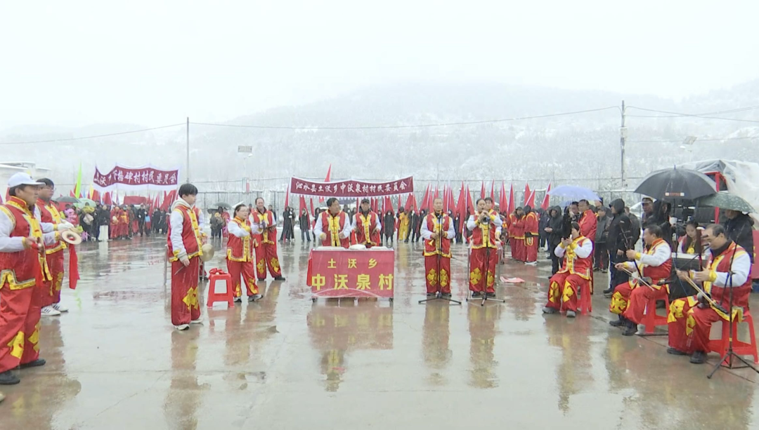 这其中有大气磅礴的威风锣鼓,有国家级非遗土沃老花鼓,也有歌颂美好幸福生活的民间秧歌。虽然天空飘着鹅毛大雪,但恰似最美的背景板,配合着一个个精彩的节目将欢庆元宵的喜庆氛围逐步推向了高潮,让每一个角落都洋溢着节日的喜悦与温暖。