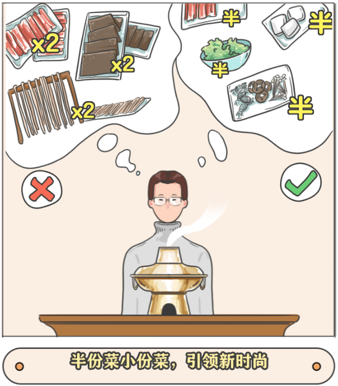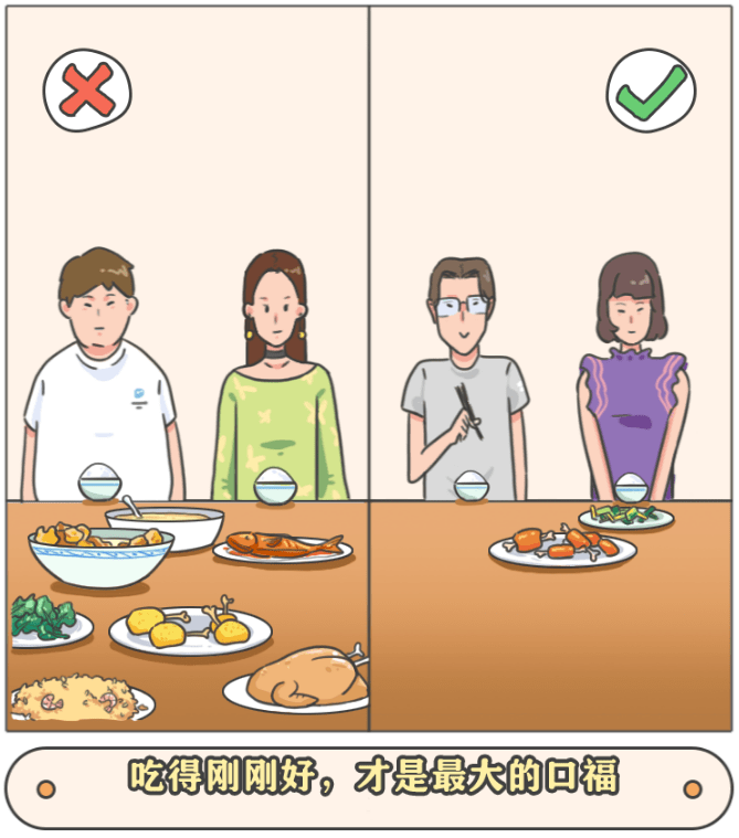 主副食、荤素搭配均衡才能吃出健康,合理点菜,不贪图排场,养成剩菜打包的习惯。
